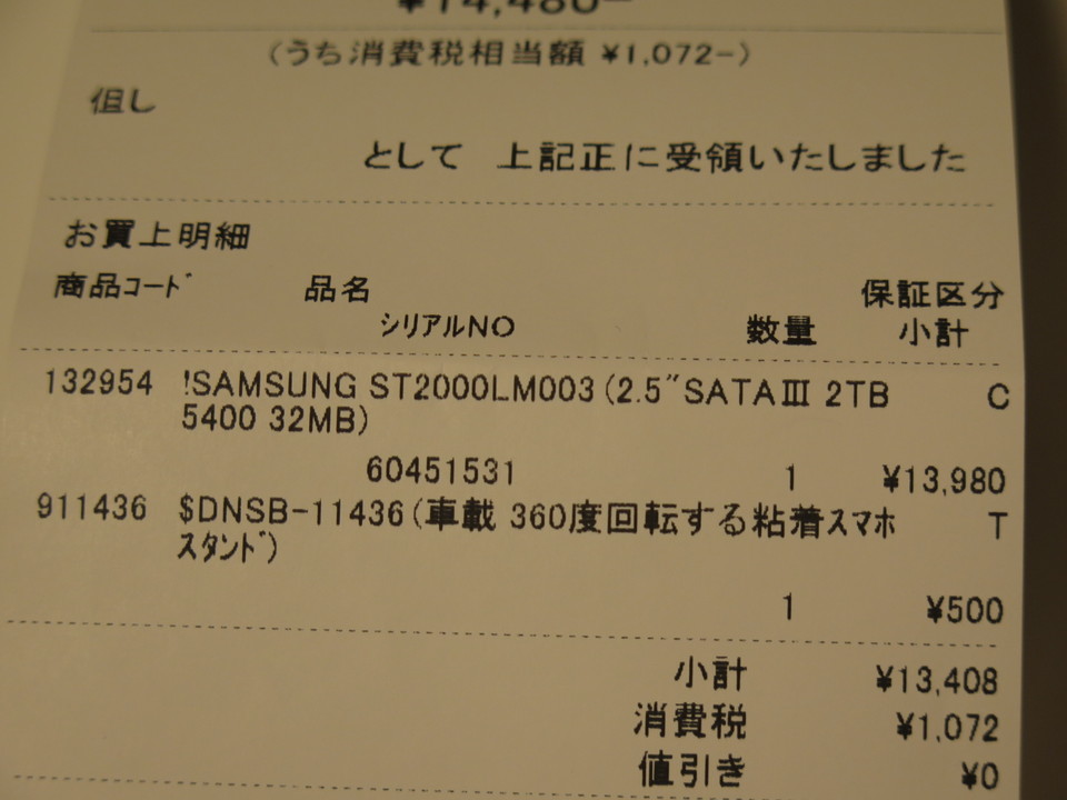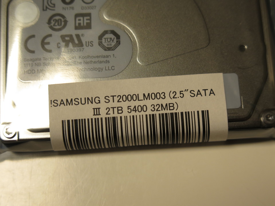 行きつけのドスパラで購入。SAMSUNG製で、どうやら2.5inchで2TBの容量を持つハードディスクはこの製品が初めてらしいです。値段は13,980円なり。