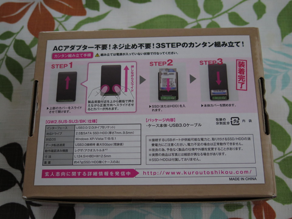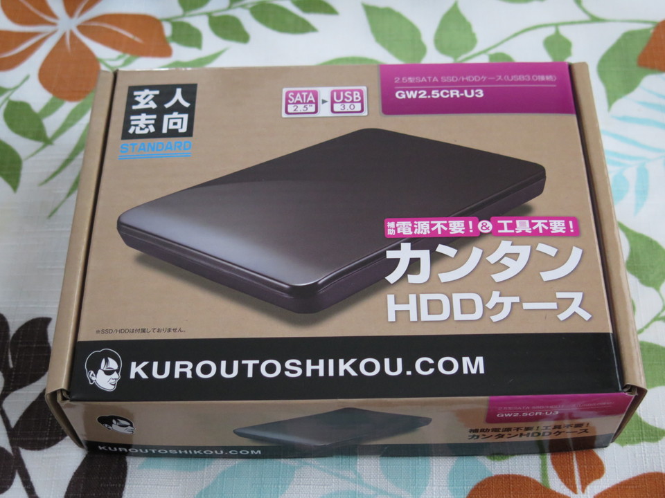 内蔵用HDDをUSB接続で外付けするための、HDDケースと呼ばれるものです。小生が購入したHDDケースのメーカーは、知る人ぞ知る玄人志向。最近でこそパソコンの自作は下火な感がありますが、たぶん10年ほど前まで、メーカー製パソコンを買うよりは自作した方が安く高スペックな物が組めた時代は、玄人志向などの安価で素人お断りなパーツが大人気だったのですよ・・・