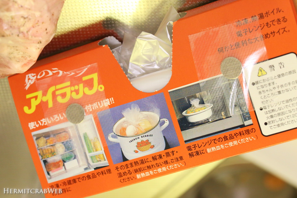 なんのことかというと、袋のラップ「アイラップ」のことです。食品保存に優れた防湿性を持ち、熱湯ボイルにも使えるというポリ袋で、カセットコンロで有名な岩谷産業株式会社の子会社、岩谷マテリアル製です。