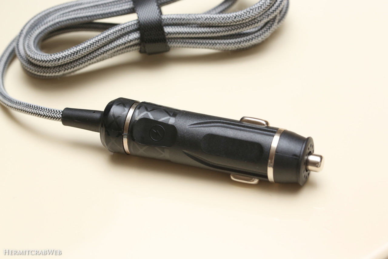 街乗り30分ほどでテストした限りだと、シガープラグが過熱するようなこともなく、安全に充電できている印象です。レビューではプラグが溶けたとかシガーソケットが壊れたとかという記述も見られます。シガープラグの差し込みが硬いことなど、雑に使うと壊れそうな予感はしますので、充分注意しながら慎重に使うのが良さそうです。