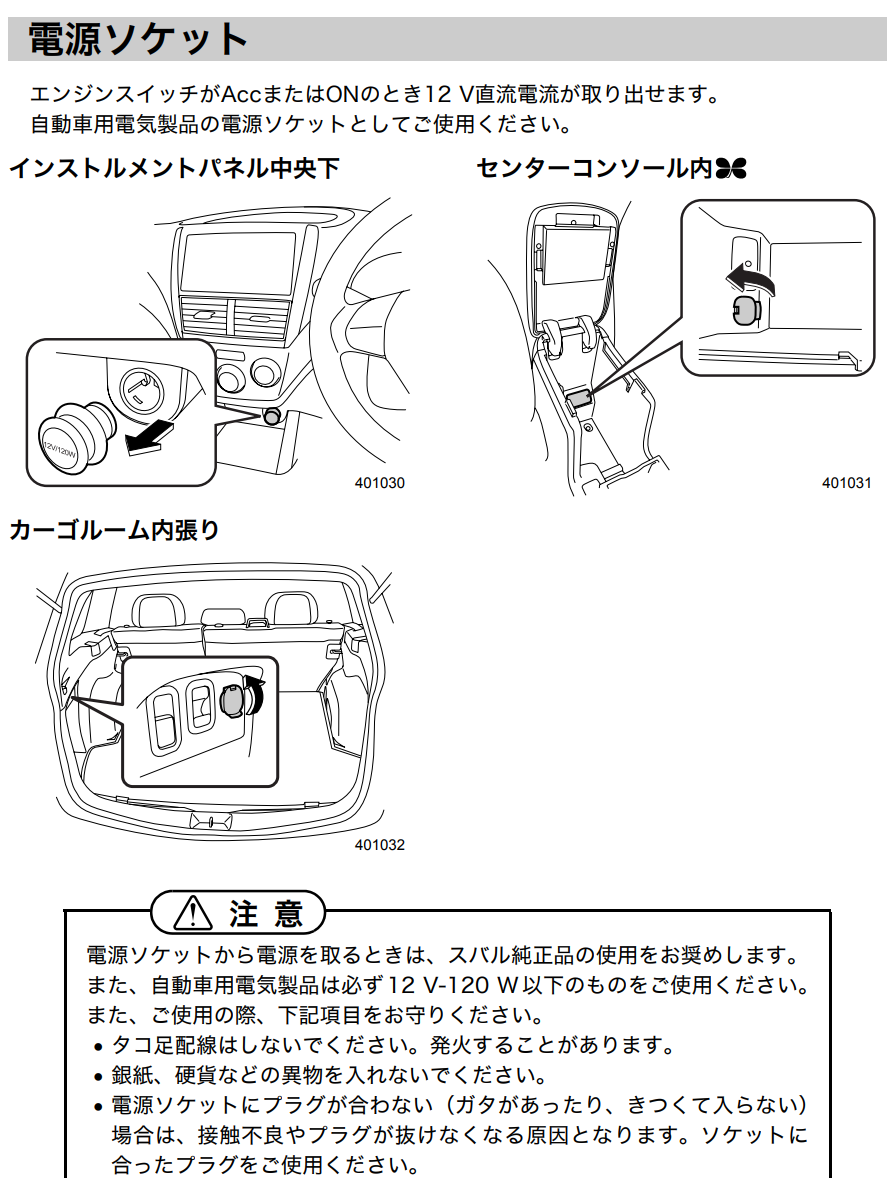 フォレスターのマニュアルにはシガー電源は120W以下で使用するようにとの記述がありました。100Wで頭打ちになる仕様はフォレスターにとってもありがたいです。