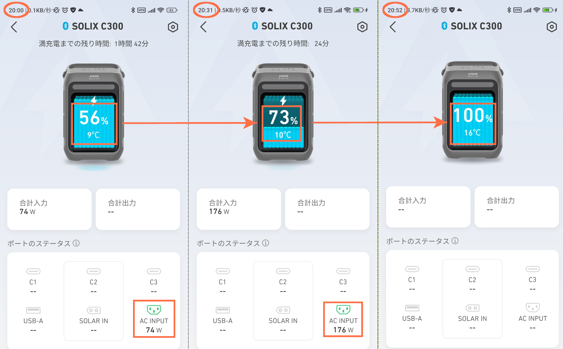 仕方ないので、サードパーティー製ケーブルを購入したのですけど、粗悪なケーブルだと故障や過熱が心配です。ですのでテストしてみました。ついでにC300の情報を把握できるスマホアプリも使ってみました。
