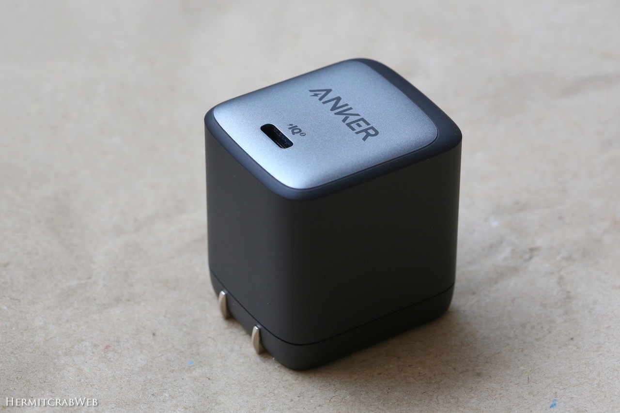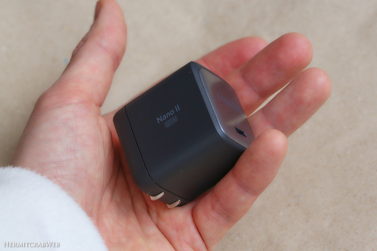 Anker Nano II 65Wはこんな見た目。サイズが約44 × 42 × 36mmなので、かなり立方体に近い感じです。
