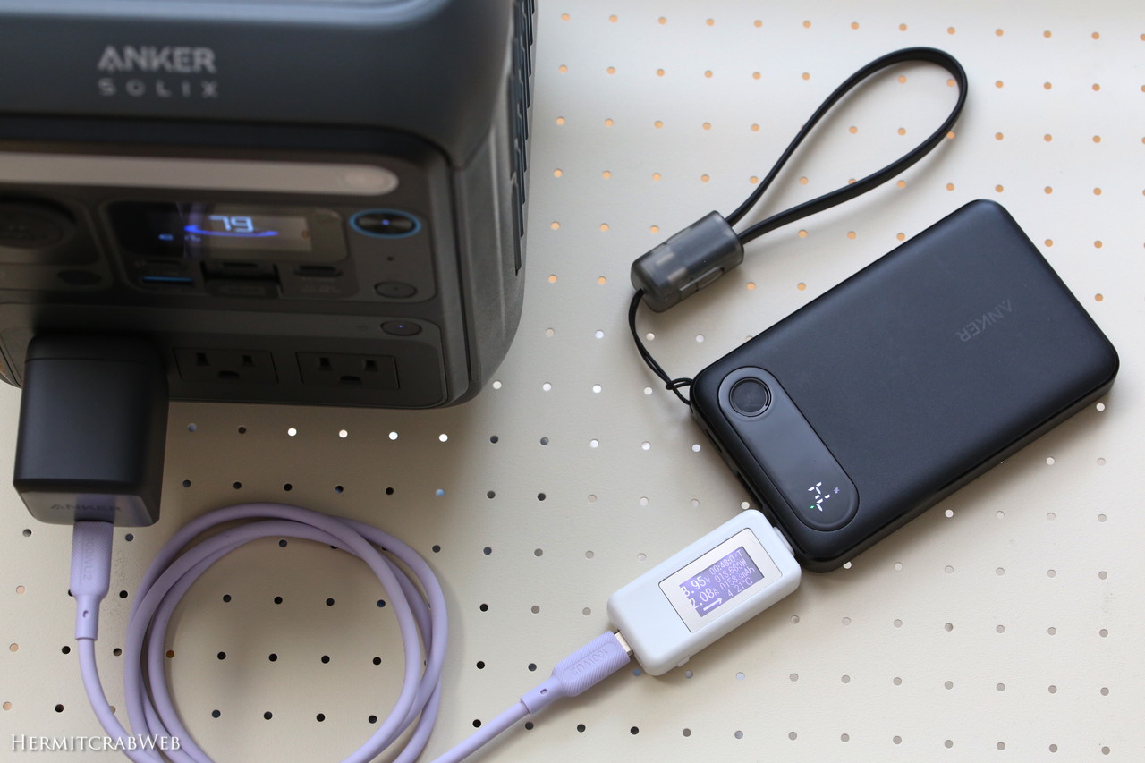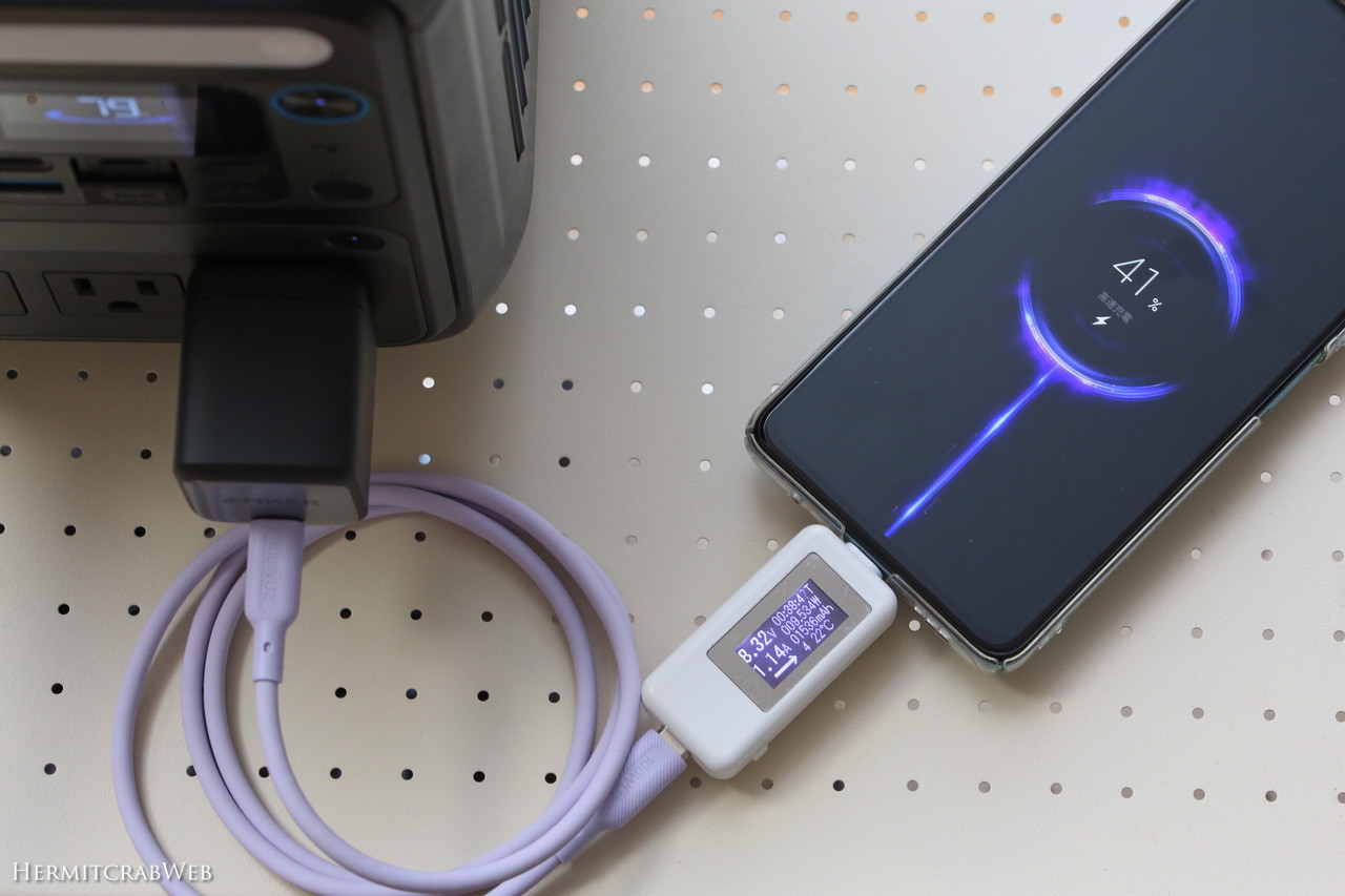 Anker Power Bank (10000mAh, 22.5W)への給電はこんな感じ。しっかり速度が出ています。