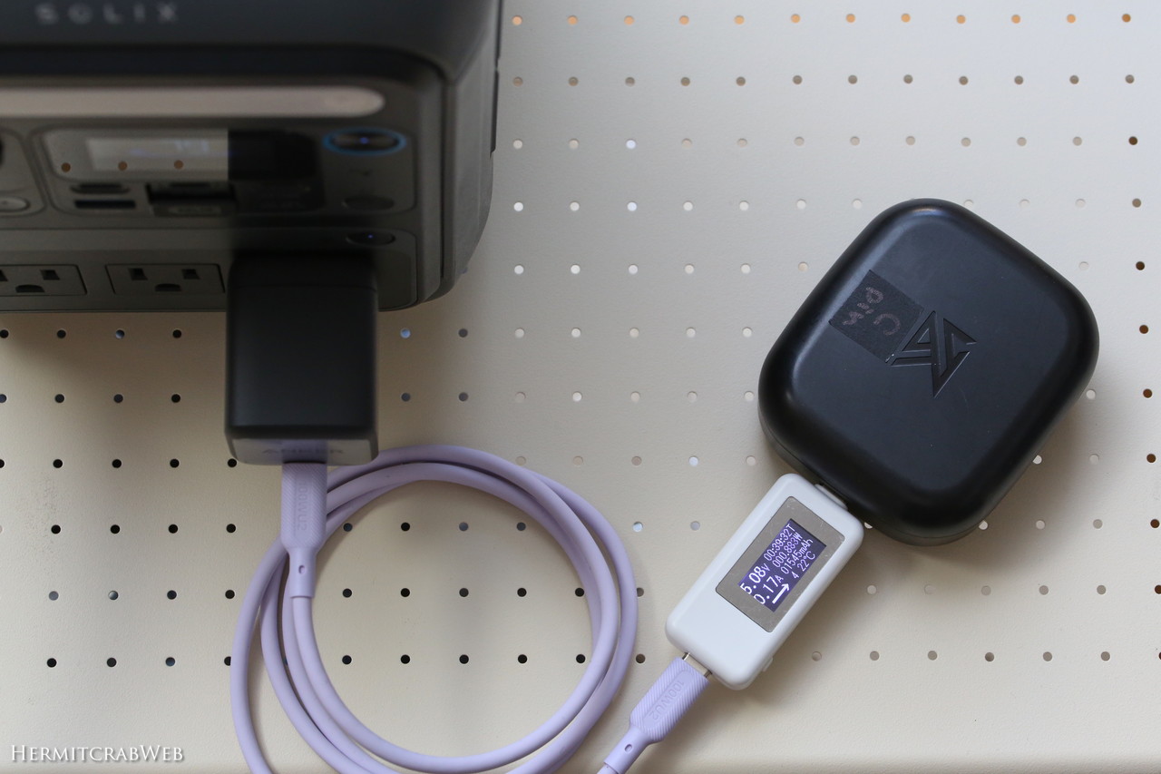 USB Type-Cポートがひとつなので当然なのですが、このポートにケーブルを挿せば事は成り立ちます。多ポート充電器だとどうしても、PC充電は一番上のポートに、USB-AケーブルはUSB-Aポートに・・・と、アタマを使う必要があります。