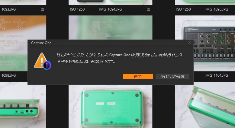 Express版が使えなくなったことに気づき慌てたのは2月中旬に入ってから。Capture One Expressを開くとこんなウィンドウが出て、ソフトを使うことができなくなりました。