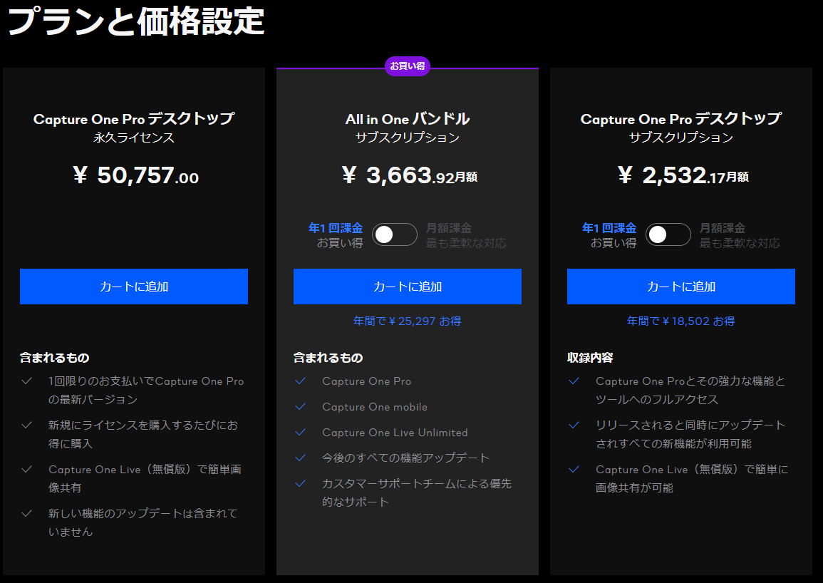 Capture One Pro買い切り版、https://t.co/M0yzszuGL0で購入することにした!