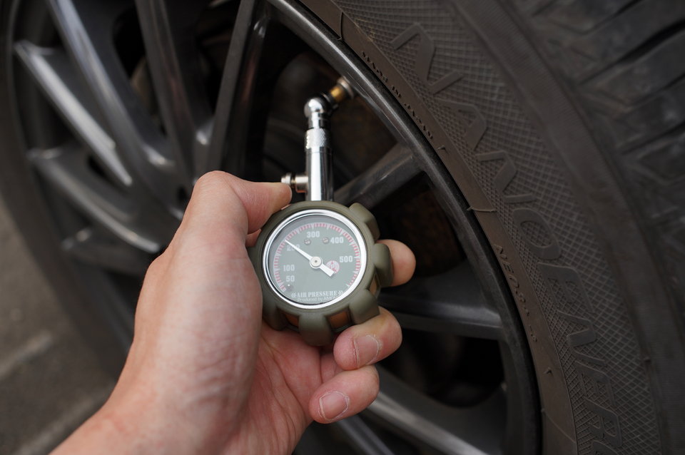 ちなみにタイヤの空気圧はタイヤが温まっていない状態で計測するのが正しい方法です。ドライブの後にガソリンスタンドに寄って計測しても、タイヤの中が熱くなって空気が膨張していますから、正しい空気圧を測ることはできません。