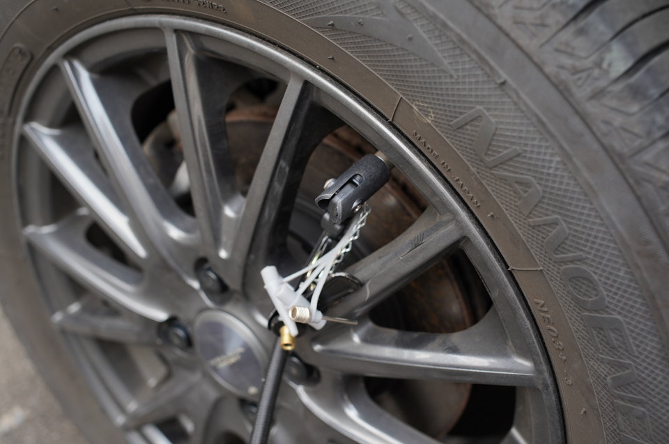 タイヤのバルブに丁寧に接続して・・・