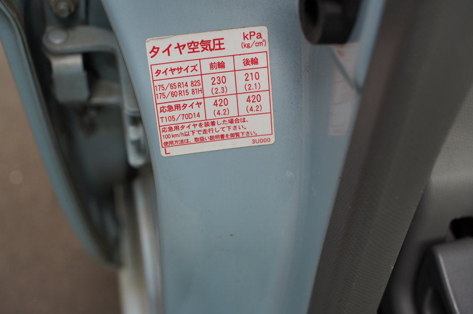 タイヤの空気圧は運転席ドア後ろ付近に記載されています。