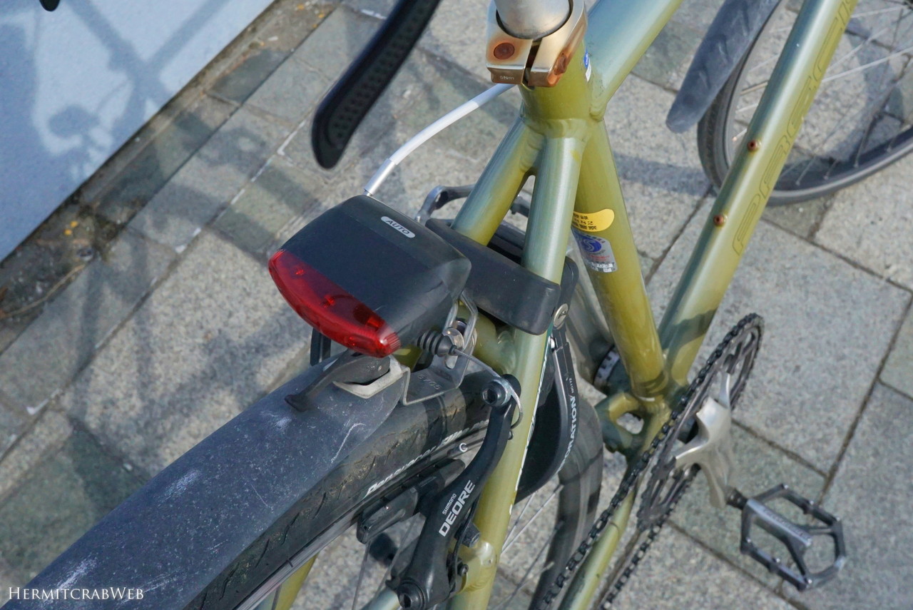 シーズン開始に向けクロスバイクのメンテ。10年使っているテールライトの動作チェックもした。