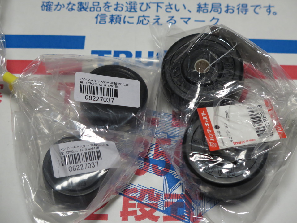 結果から申し上げますと、いずれのホームセンターにもタイヤはありませんでした。あるのは、台座つきのタイヤ、すなわちキャスターのみです。まあタイヤだけの需要なんて、そんなにないことは想像に難くはありませんが・・・