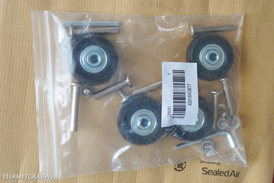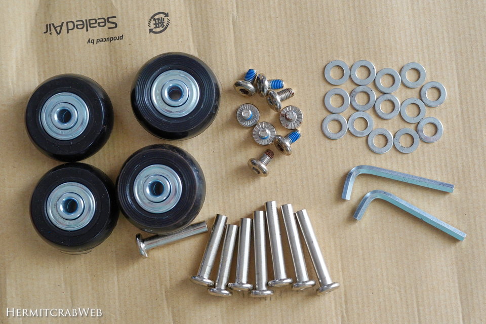 当時はあまりDIY情報もなかったので、ホームセンターなんかで買い集めた材料を組み合わせて作業を行いました。結果はイマイチで、その後数回の使用でスーツケースごと廃棄してしまいました。まあ古いスーツケースでしたし、タイヤ以外にも不満点があったので仕方ないのですが。