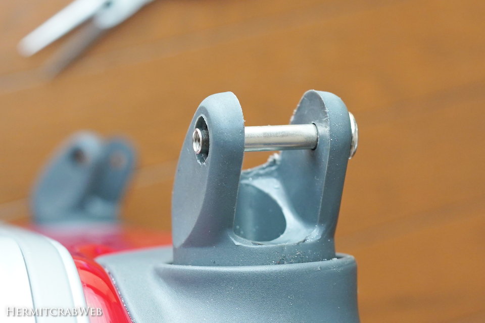 こちらは長い方のシャフト。少しはみ出しているので、固定には問題ないもののシャフトのグラつきが気になるかも。とはいえ外側に市販のスペーサーを入れるなどすればこのシャフトも充分使えます。