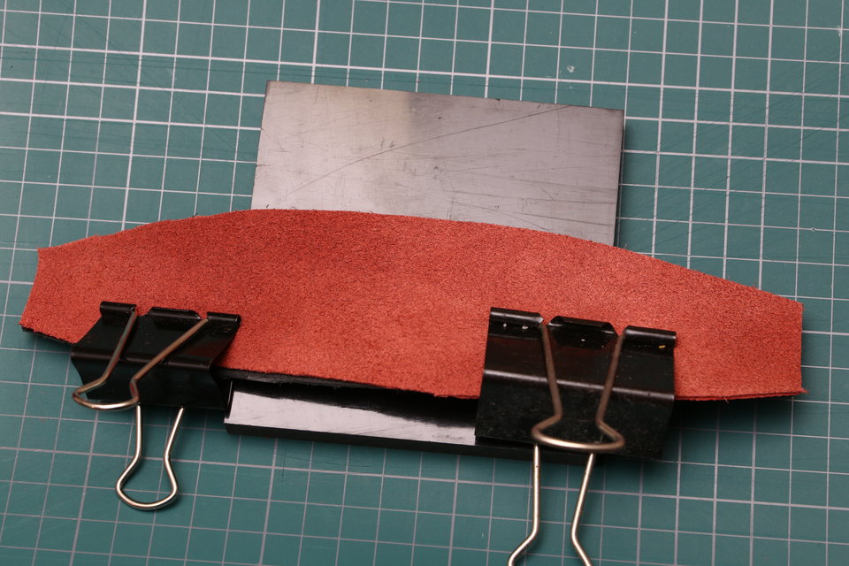 なんとなく、ヘッドバンドの外側を黒、内側を赤にしたかったので、そのように革を用意しました。