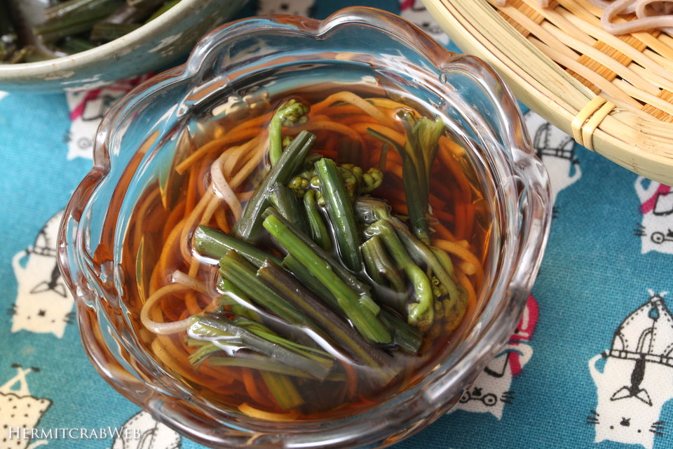 山菜といえば山菜そばでしょう、ということで、お蕎麦と一緒に食べることにしました。