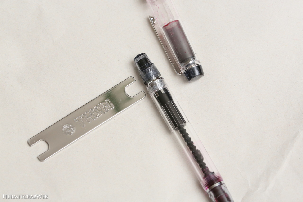 カスタムヘリテイジ92の機構はTWSBIに近いですし、ネットではTWSBIの分解工具が使って分解掃除している情報も見つけましたが、試したところ分解工具が僅かに厚く、使えなさそうでした。