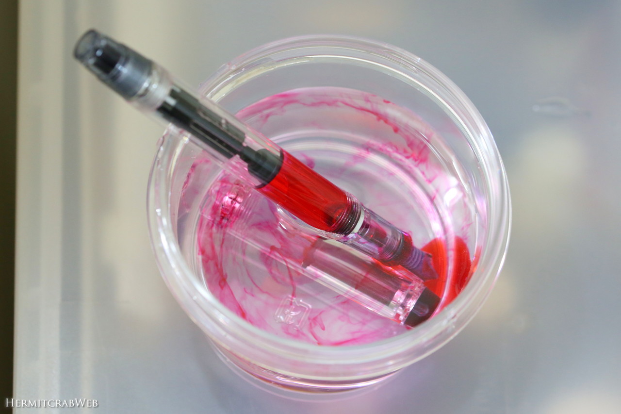 手に入れたカスタムヘリテイジ92は中古品で、赤系のインクが入っていました。インクを使い切ったところで、まずはきれいに洗浄します。