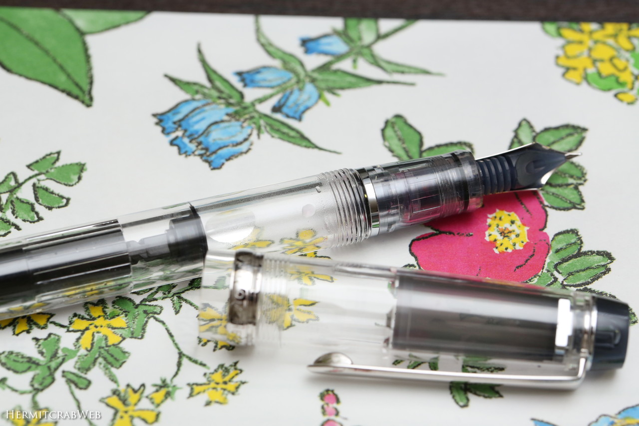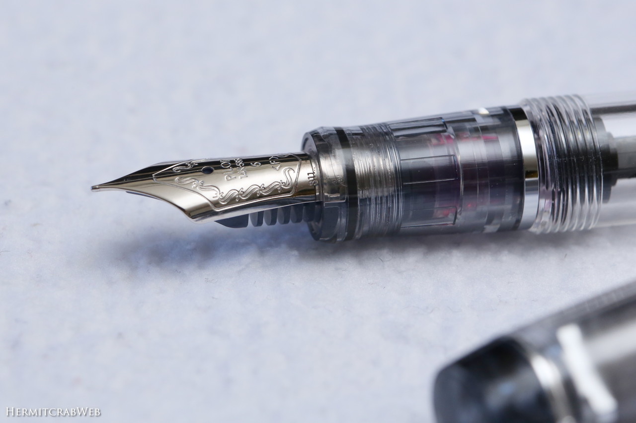 ペン先は14Kで、いわゆる金ペンです。ボディはスケルトンなので、入れているインクの色が鮮やかに見えます。