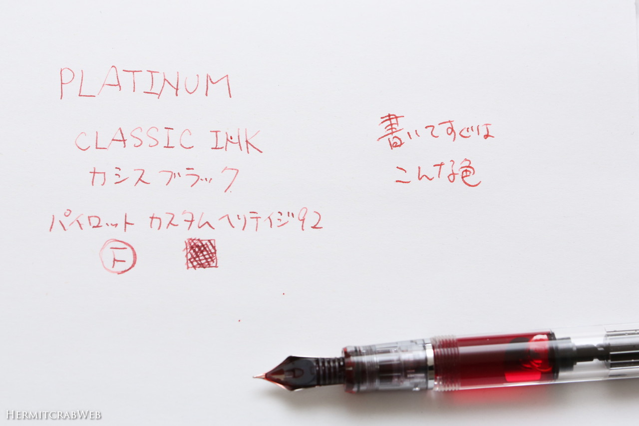 【PILOTカスタムヘリテイジ92+PLATINUMカシスブラックインク】金ペンで楽しむ古典インク!色味がドンドン変わるので楽しい!