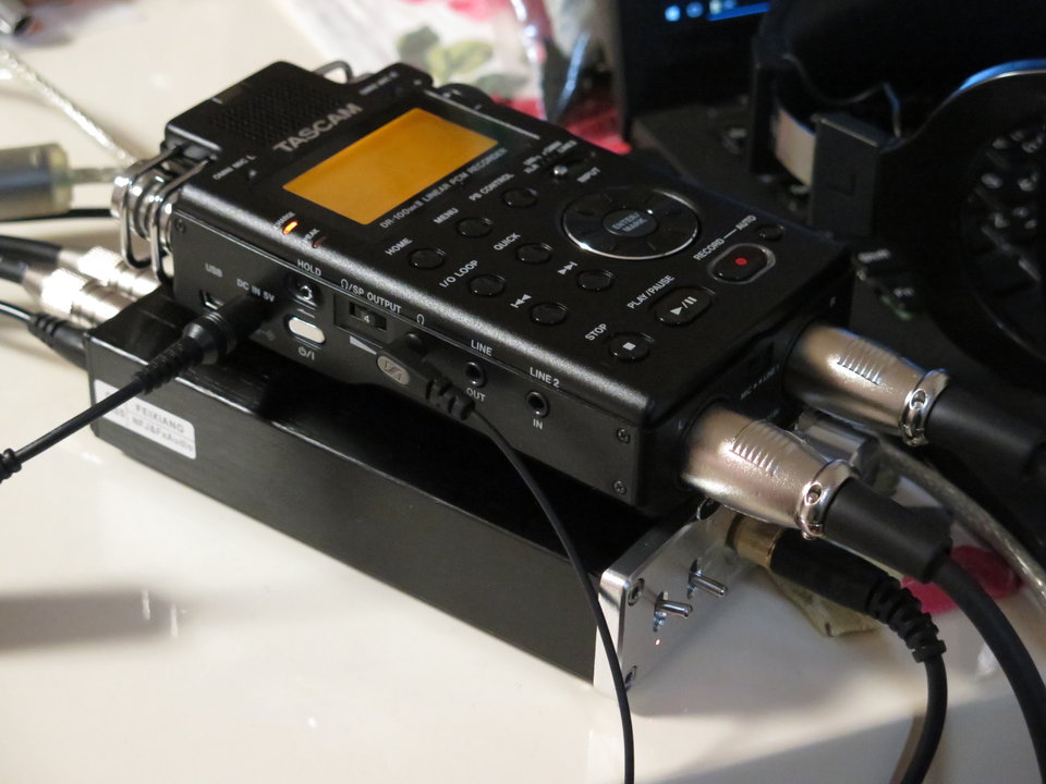 そして、さっそくヘビーに使ってみました(笑)DAC-X6のラインアウトをTASCAM DR100MKIIのライン入力に接続し、PCで再生している音を録音しています。ライン出力も問題なく動作しました。デジタル入力は未検証です。