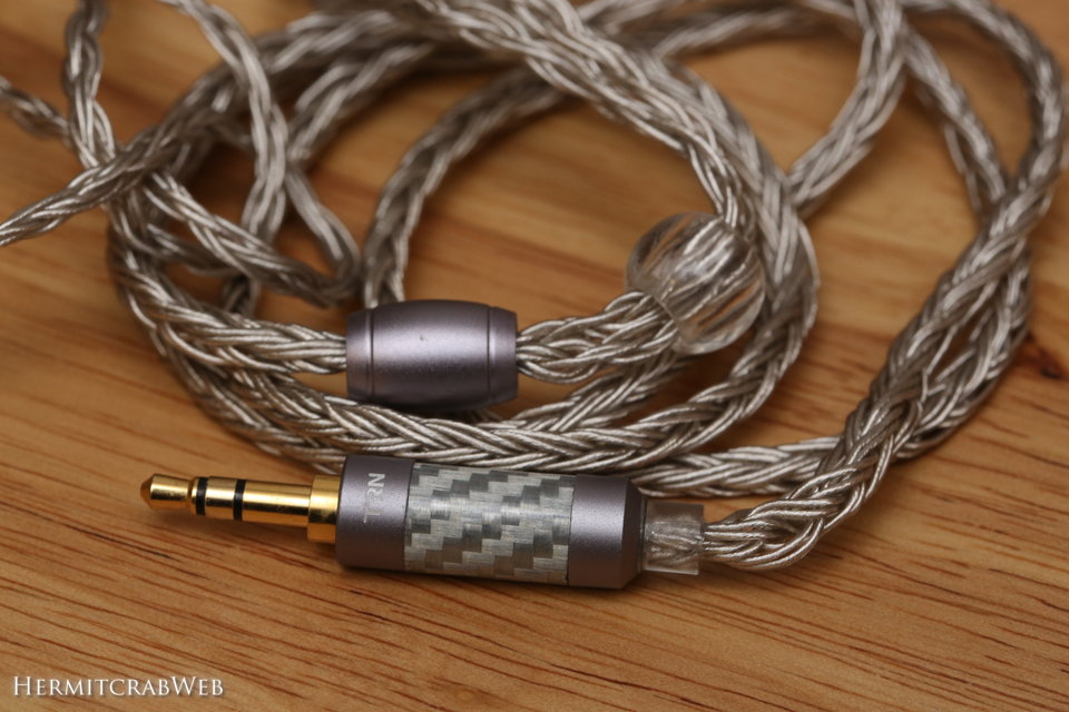 もうひとつはこちら。TRNの16芯銀メッキ銅線ケーブル、 3.5mmアンバランスプラグ、コネクタは中華2ピンです。Aliexpress購入時価格は送料込み995円でした。