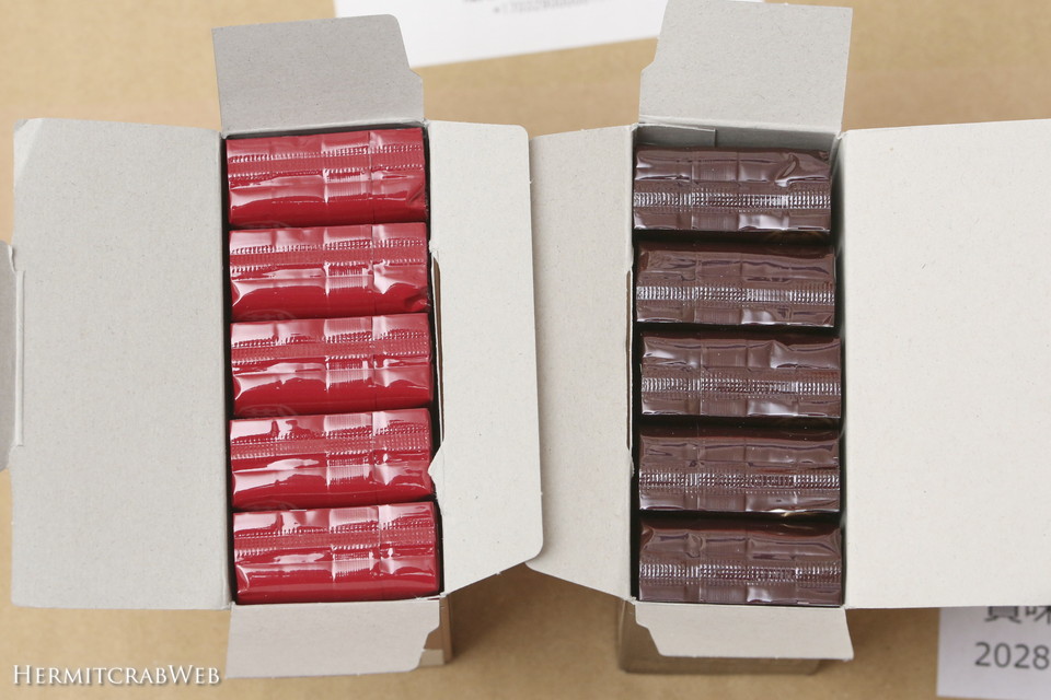 ただ香りはかなり異なります。チョコの方はかなりチョコの香りがして、このように並べると煉もチョコの香りがしてくるくらい(笑)