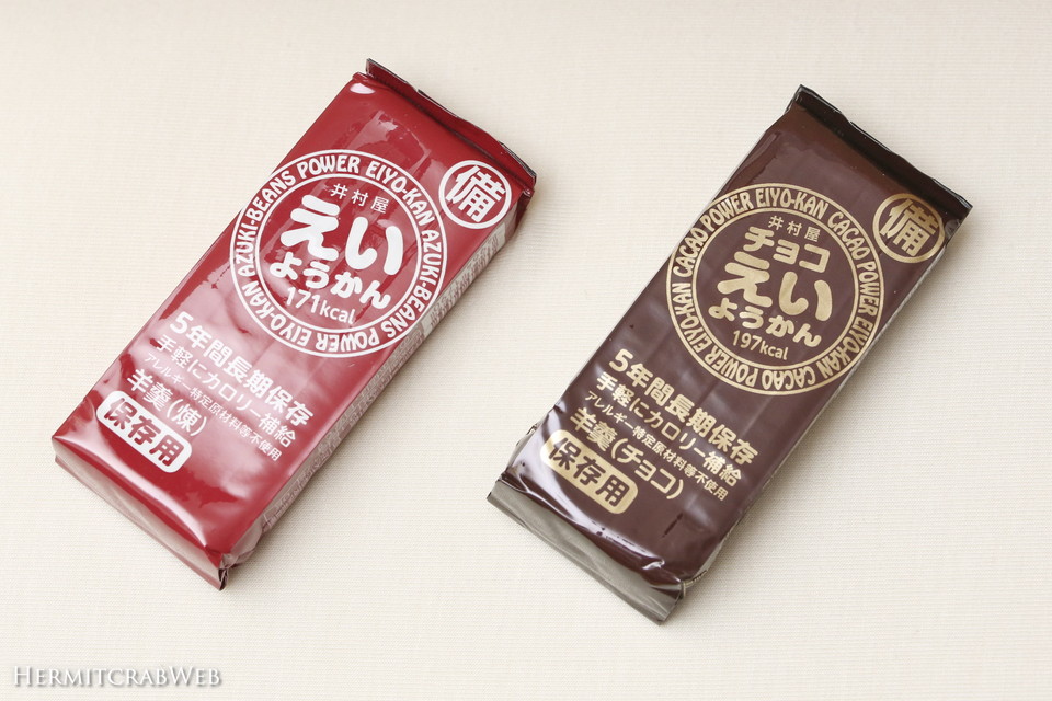 井村屋えいようかんの大きな特徴は、一般的な羊羹が1年程度の賞味期限のところ5年6ヶ月もの長期保存が可能なところ。備蓄食料は賞味期限や消費期限の管理が面倒な点の一つですけど、その管理が5年程度不要になるというのは素晴らしいですね。