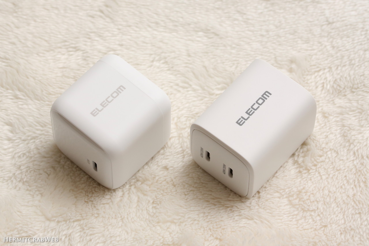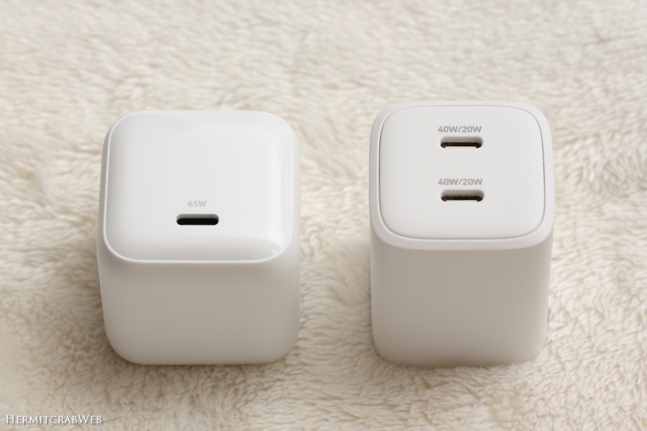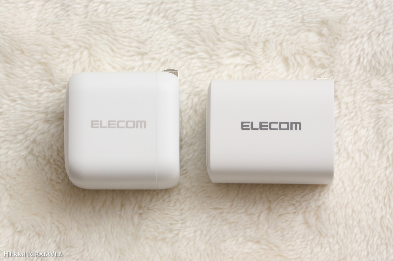 ほぼ同時に購入したEC-AC12465WHと比較してみます。こちらは1ポート65W充電器です。