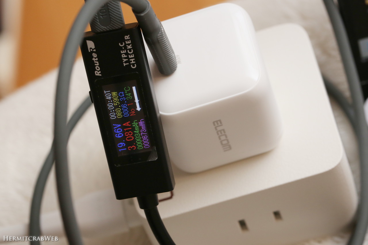 チェッカーの表示のとおり約60Wで給電できてますので、スペックどおり出力できていることが分かりました。