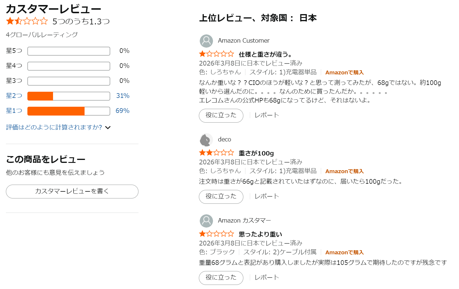 Amazonレビューが出始めたのでチェックしてみると、なんと★1.3の低評価!?何があったのでしょう。