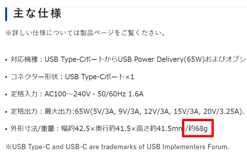 え?この充電器の重さが68gだって??そんなに軽い65W充電器があるか?