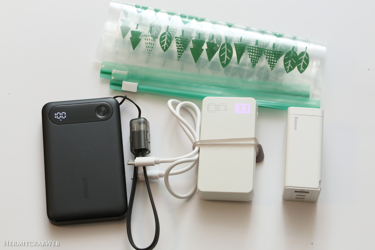 モバイルバッテリーを充電する余裕があるときのために、充電器もセットに入れることにします。