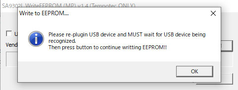 先ほど調べた数値を入力します。VenderIDにVID_の数値、ProductIDにPID_の数値を入力し、Write EEPROMをクリック。