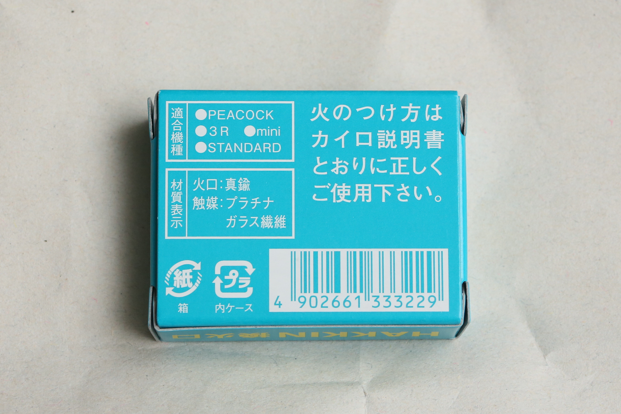 火口はPEACOCK、3R、ミニ、スタンダード共通との記載があります。小生のハクキンカイロはミニタイプです。PEACOCK、3Rはスタンダードの旧名称のことのようです。