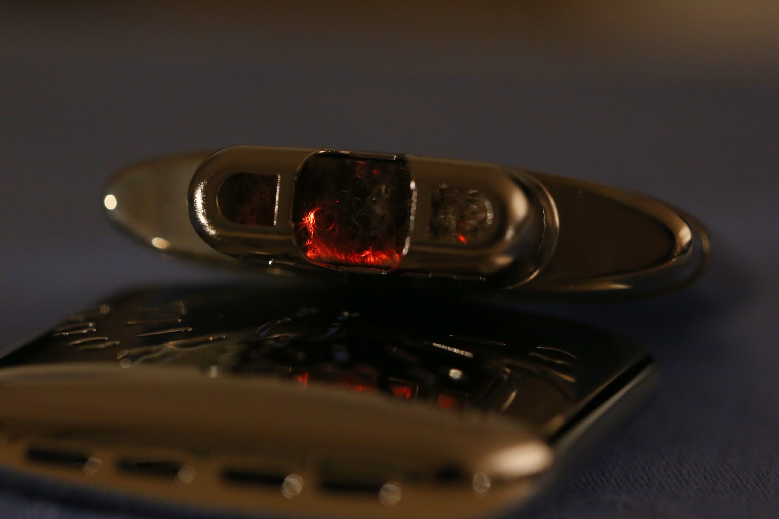 触媒もしっかり赤くなります。ちなみに触媒が燃えているのではなく、ベンジンが気化し発生した水素と触媒とが反応して熱を発生させるのが、ハクキンカイロが暖かくなる仕組みです。