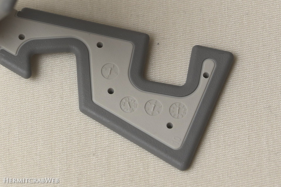 内部にいろいろ刻印があります。丸の中に矢印で数字を示しているのはおそらく製造時期を示しているのでしょう。【A】【23】【2】【2】と刻まれており、2023年の第22週(5/29~6/4あたり)に製造されたことを意味すると推測できます。Aが何を意味しているのかは良くわかりませんが、生産工場を示しているのかも。