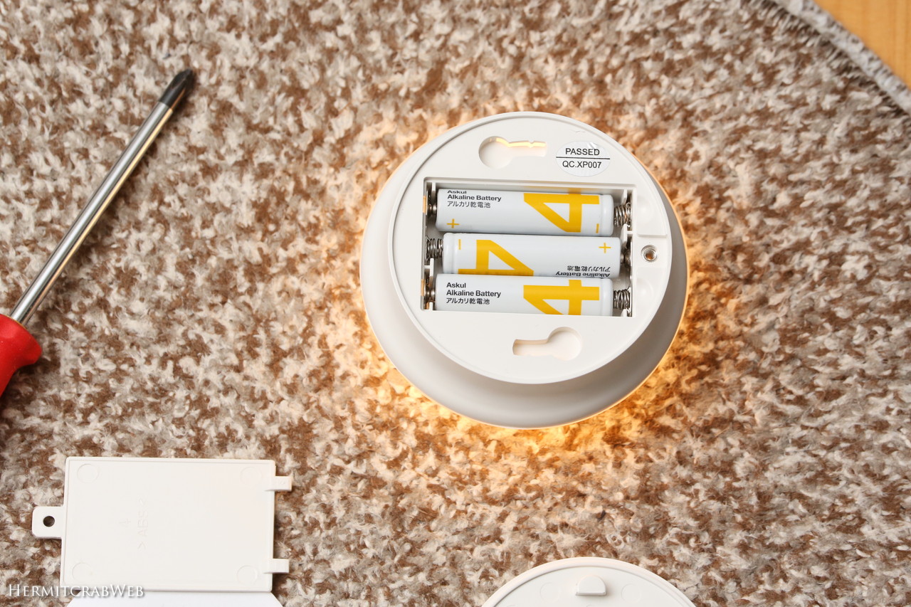 ライト本体にはスイッチがないので、電池を入れるとすぐに動作します。