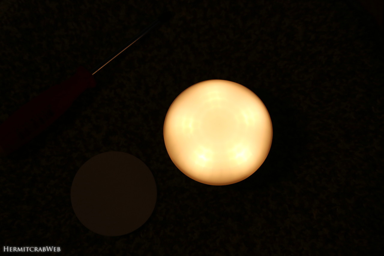 ある程度暗い環境下で人間を感知すると点灯します。LEDは5個搭載されているのかな?ちょっとウニなどの水中生物にも見えますね。