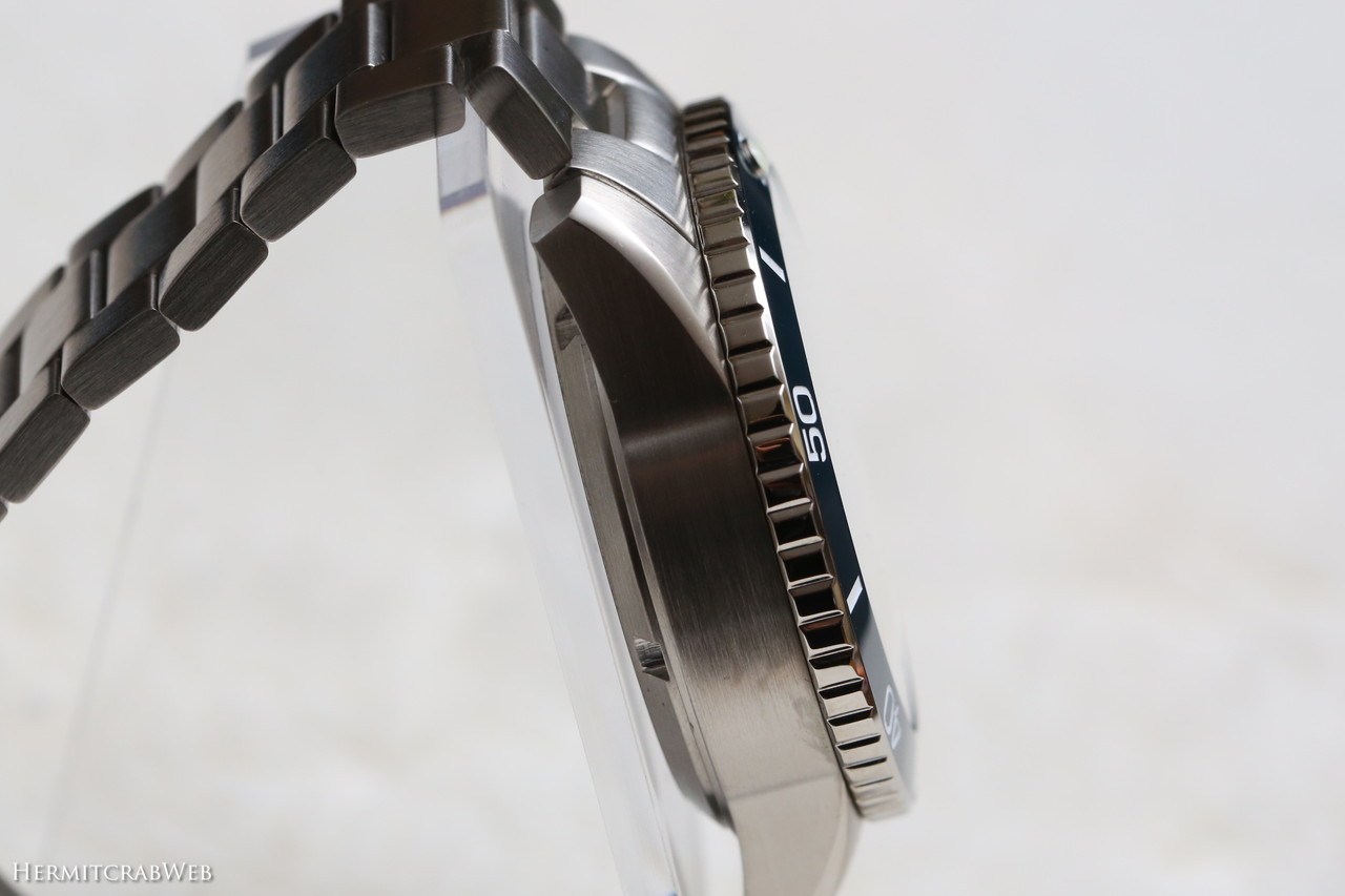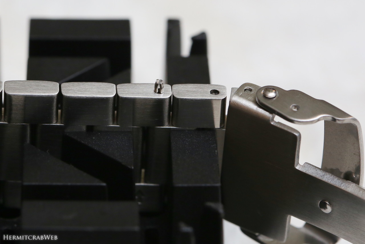 こちら側の面にはこんな感じ。ブレスを含め、ほとんどのパーツがヘアライン仕上げになっています。