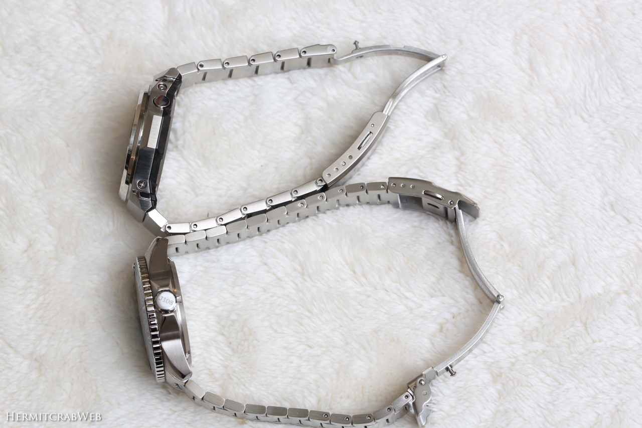 もちろん、これまでに紹介してきたとおり製品自体に抜かりはありません。サファイアクリスタル風防や316LステンレスブレスはG-SHOCK GST-B1000Dのそれより良いものを使っていますし、トラディショナルなデザインではありますがコマが小さめのブレスを選んでいるところにも好感が持てます。球面風防もまた心憎いチョイスではありませんか。