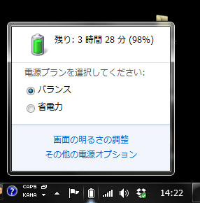 先日クルマのバッテリー交換をした小生でしたが、実はその前から悲鳴をあげていたバッテリーがあったのです。それは、小生のノートパソコンのバッテリー。2010年12月に購入記事を書いていますから、かれこれ4年半近く使用しています。昨年にはHDDを2TBのものに換装しあと10年は戦えると豪語していたのですが、3月中旬頃から画面にこんな表示が出るようになりました。