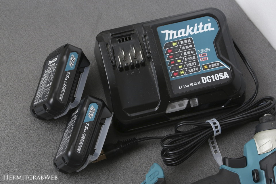 1.5AhバッテリBL1015は実売6,000円程度、充電器DC10SAは同5,000円程度であることを考えると、このセットは超お買得と言わざるを得ません。良い買い物をしました。