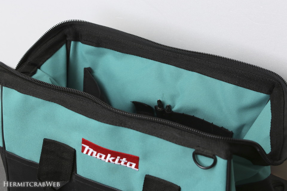 たぶん非売品のツールバッグ。大きな開口部、防水っぽい底面など、現場でタフに使い倒せそうなバッグです。