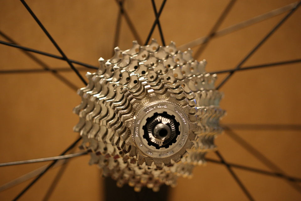 スプロケットは10枚。1世代前のTiagraと思われますが、金属の色でかっちょいい!若草号は黒く塗られたスプロケットでしたからねぇ。