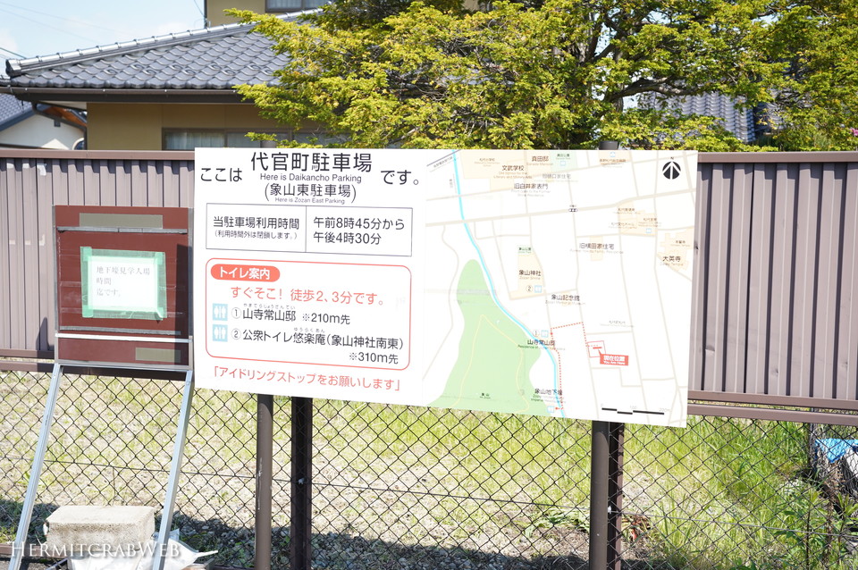 象山地下壕に到着しました。近くに管理事務所があるので、そこで人数などを申告してパンフレットをもらいます。
