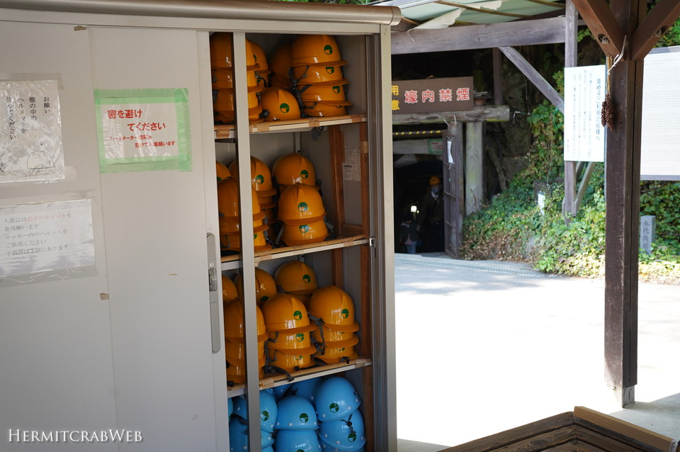 ヘルメットがありますので、必ずかぶりましょう。なぜかというと、絶対に頭をぶつけるから。それくらい、危険な壕なのです・・・!