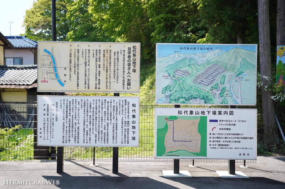 松代南部には象山のほか舞鶴山皆神山の3つの山があり、軍部は大本営のほか皇居や日本放送協会のラジオ放送機能も移転させる計画でした。これらを含めて松代大本営と呼び、そのうち一般公開されているのが象山地下壕です。