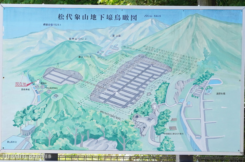 象山地下壕の位置関係がひと目で分かる、見事な鳥瞰図です。