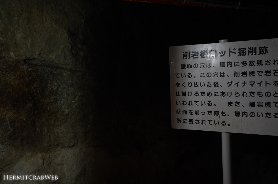 この地点は岩盤が硬いことから、地下壕建設場所に選ばれたとのこと。手掘りの跡が生々しいです。